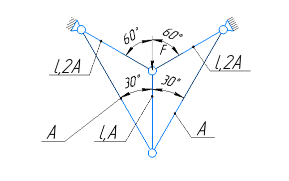 Найти напряжения, возникающие в стержнях при найденной нагрузке