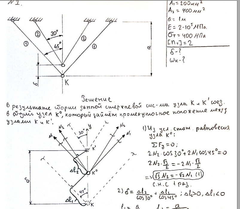 Найти напряжения, возникающие в стержнях при найденной нагрузке