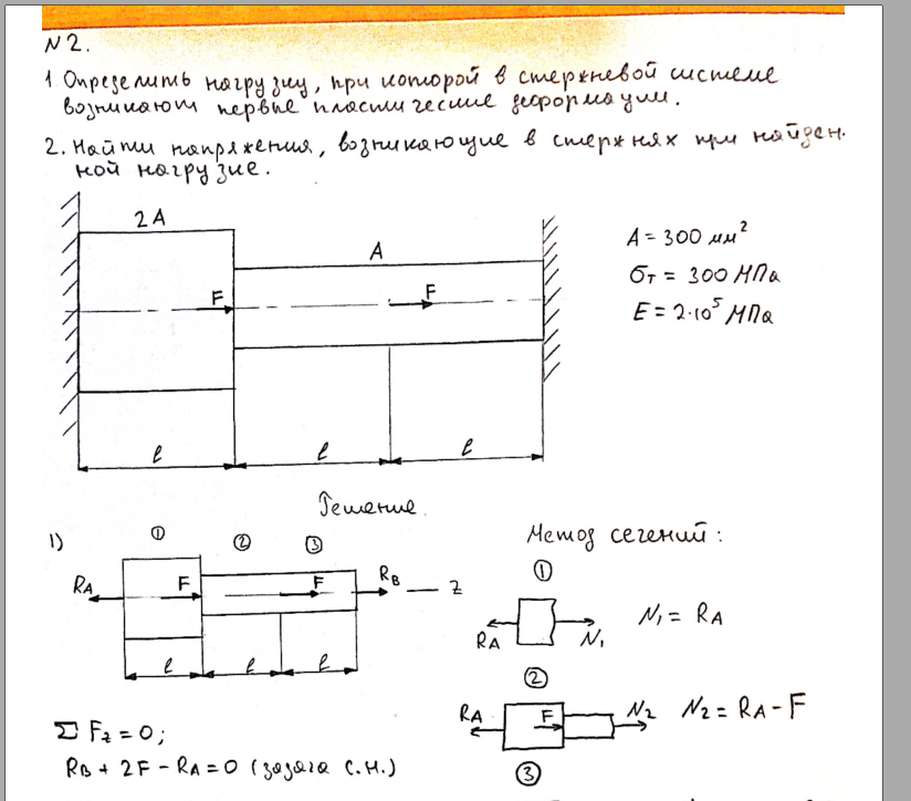2) Определить нагрузку, при которой в стержневой системе возникают первые пластические деформации