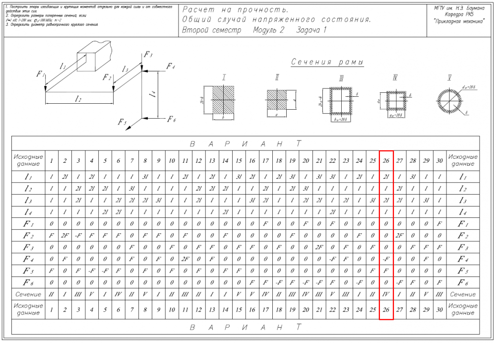 ДЗ 6C: Расчет на прочность. Общий случай напряженного состояния вариант 26