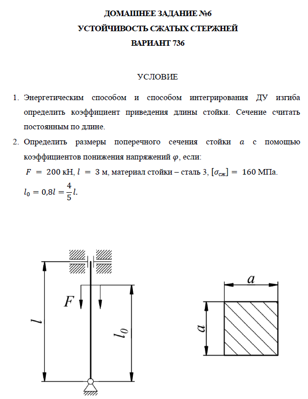 ДЗ 6: Устойчивость сжатых стержней вариант 736