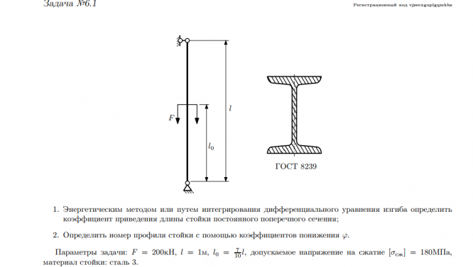 ДЗ 6: Устойчивость сжатых стержней вариант 656