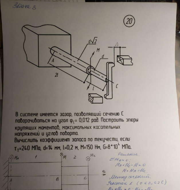 ДЗ 2: Растяжение — сжатие, Кручение вариант 20