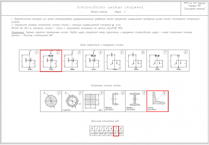 ДЗ 6: Устойчивость сжатых стержней вариант 265