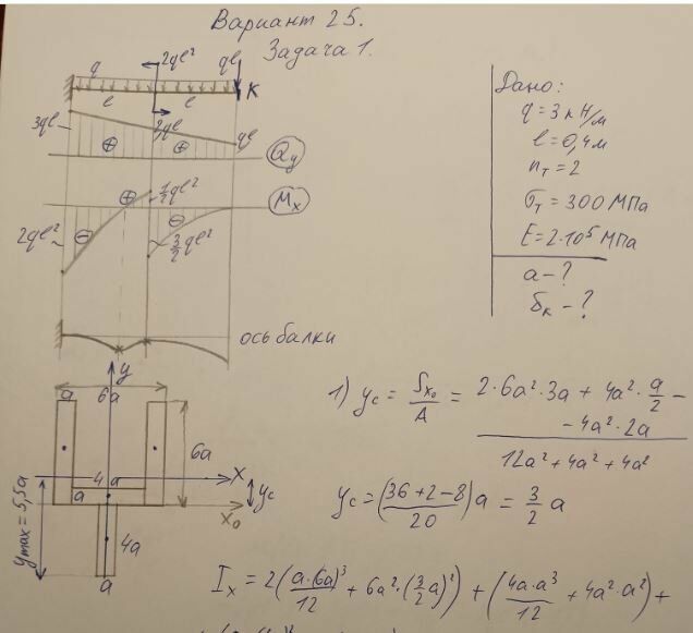 Вариант 25 - ДЗ №3 - Статически определимые балки - Задача 1 + 2