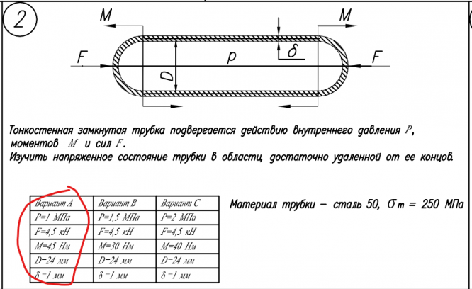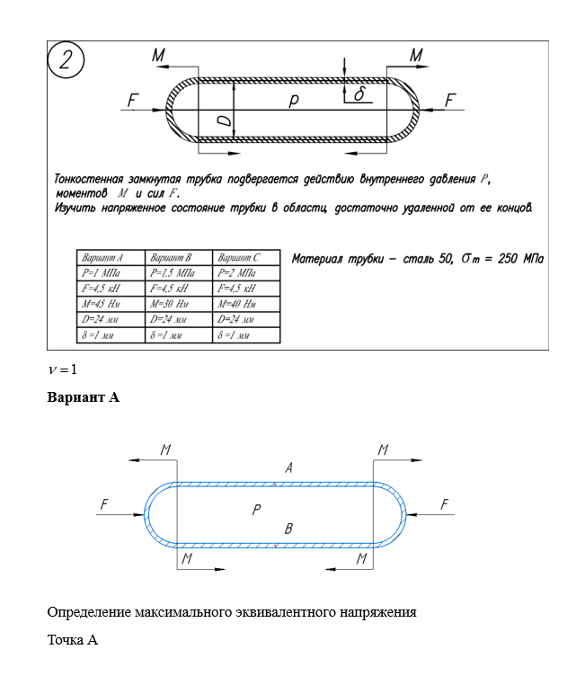 Главная » Учебные материалы » Сопротивление материалов » Домашние задания » МГТУ им. Н.Э.Баумана » 4 семестр » Номер 5 » Вариант 2 » Расчет на прочность. Общий случай напряженного состояния