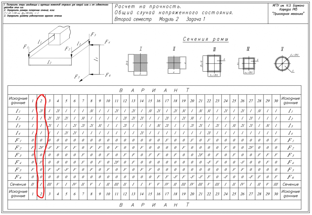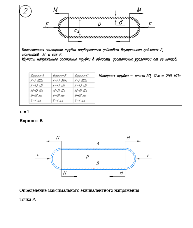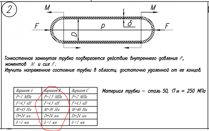 Главная » Учебные материалы » Сопротивление материалов » Домашние задания » МГТУ им. Н.Э.Баумана » 4 семестр » Номер 5 » Вариант 2 » Расчет на прочность. Общий случай напряженного состояния