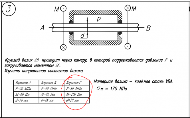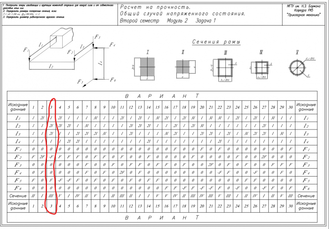Главная » Учебные материалы » Сопротивление материалов » Домашние задания » МГТУ им. Н.Э.Баумана » 4 семестр » Номер 5 » Вариант 3 » Расчет на прочность. Общий случай напряженного состояния