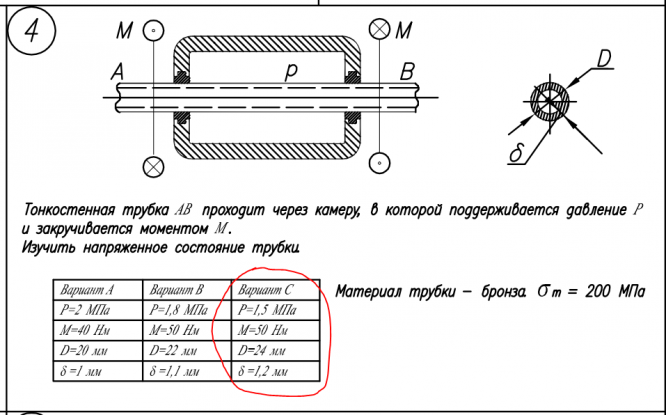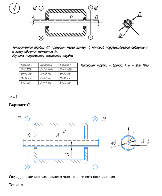 Главная » Учебные материалы » Сопротивление материалов » Домашние задания » МГТУ им. Н.Э.Баумана » 4 семестр » Номер 5 » Вариант 4 » Расчет на прочность. Общий случай напряженного состояния
