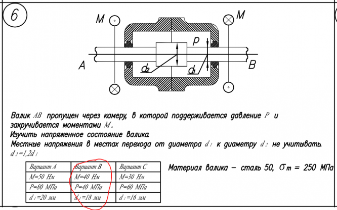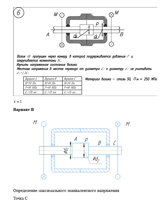 Главная » Учебные материалы » Сопротивление материалов » Домашние задания » МГТУ им. Н.Э.Баумана » 4 семестр » Номер 5 » Вариант 6 » Расчет на прочность. Общий случай напряженного состояния