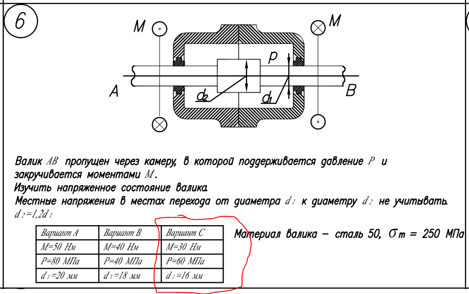 Главная » Учебные материалы » Сопротивление материалов » Домашние задания » МГТУ им. Н.Э.Баумана » 4 семестр » Номер 5 » Вариант 6 » Расчет на прочность. Общий случай напряженного состояния