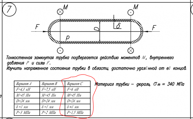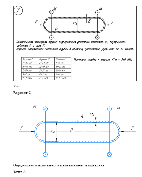 Главная » Учебные материалы » Сопротивление материалов » Домашние задания » МГТУ им. Н.Э.Баумана » 4 семестр » Номер 5 » Вариант 7 » Расчет на прочность. Общий случай напряженного состояния
