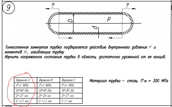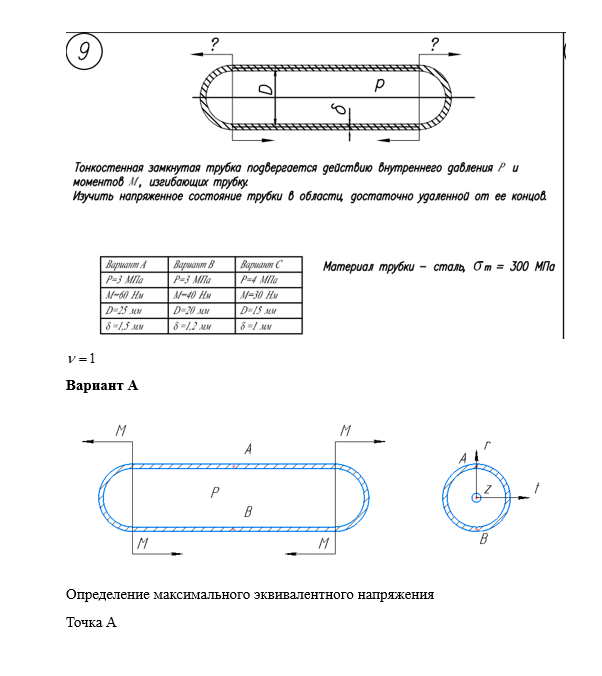 Главная » Учебные материалы » Сопротивление материалов » Домашние задания » МГТУ им. Н.Э.Баумана » 4 семестр » Номер 5 » Вариант 9 » Расчет на прочность. Общий случай напряженного состояния