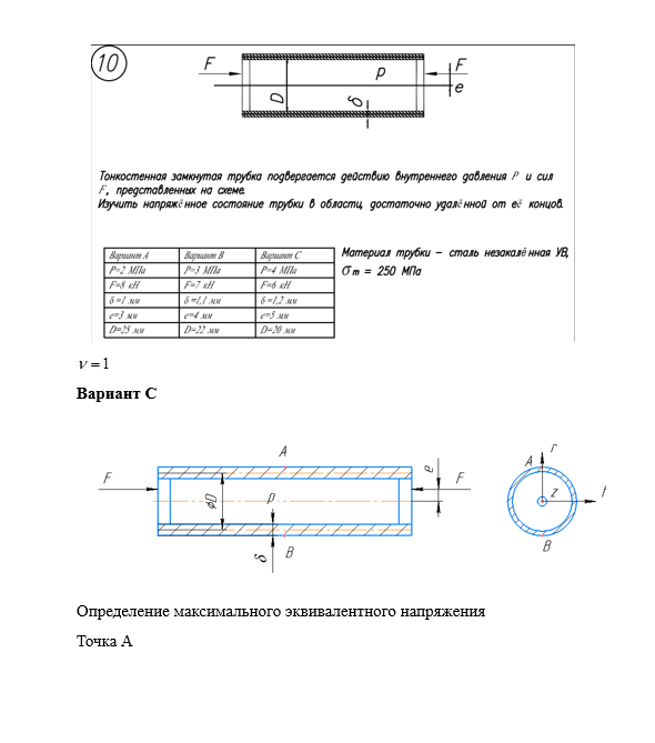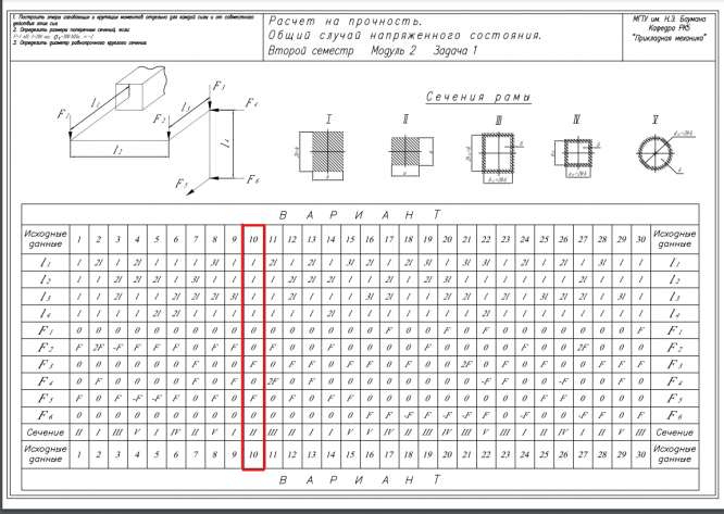 Главная » Учебные материалы » Сопротивление материалов » Домашние задания » МГТУ им. Н.Э.Баумана » 4 семестр » Номер 5 » Вариант 10 » Расчет на прочность. Общий случай напряженного состояния