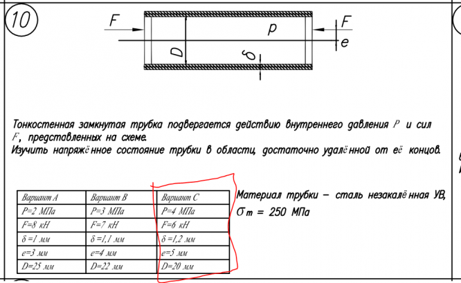 ДЗ 5: Расчет на прочность. Общий случай напряженного состояния вариант 10