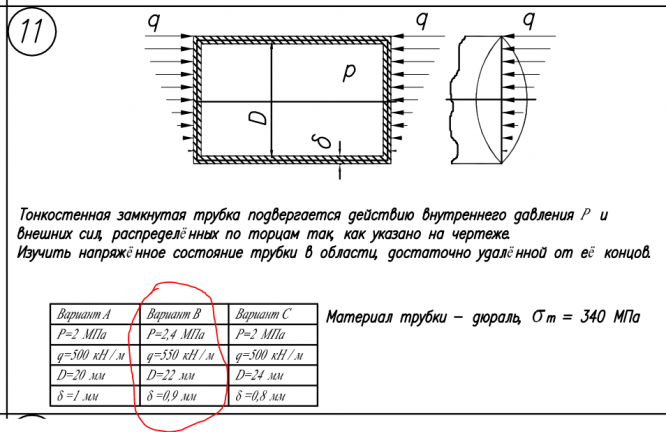 Главная » Учебные материалы » Сопротивление материалов » Домашние задания » МГТУ им. Н.Э.Баумана » 4 семестр » Номер 5 » Вариант 11 » Расчет на прочность. Общий случай напряженного состояния
