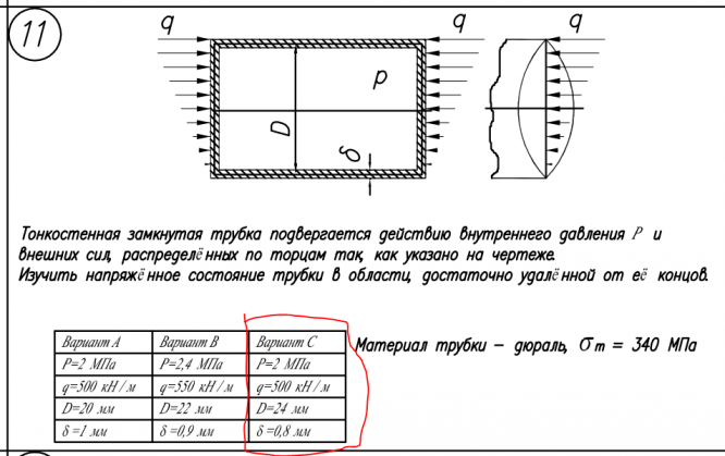 ДЗ 5: Расчет на прочность. Общий случай напряженного состояния вариант 11