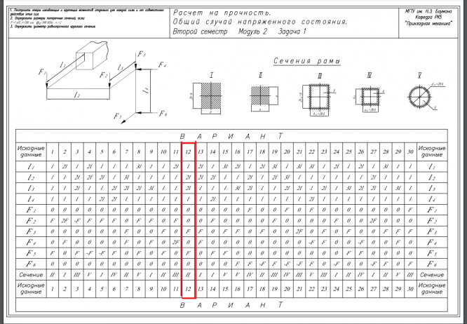 Главная » Учебные материалы » Сопротивление материалов » Домашние задания » МГТУ им. Н.Э.Баумана » 4 семестр » Номер 5 » Вариант 12 » Расчет на прочность. Общий случай напряженного состояния