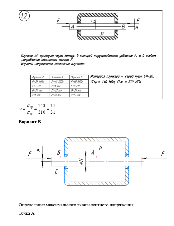Главная » Учебные материалы » Сопротивление материалов » Домашние задания » МГТУ им. Н.Э.Баумана » 4 семестр » Номер 5 » Вариант 12 » Расчет на прочность. Общий случай напряженного состояния