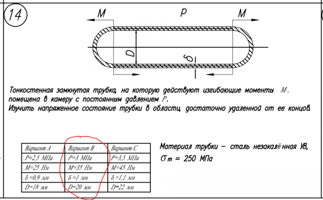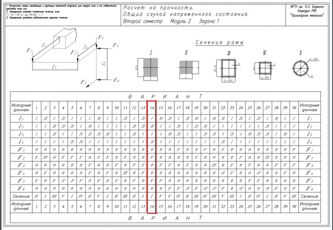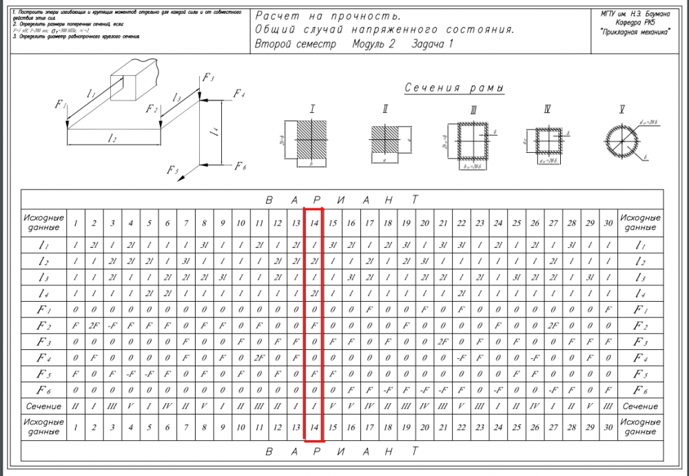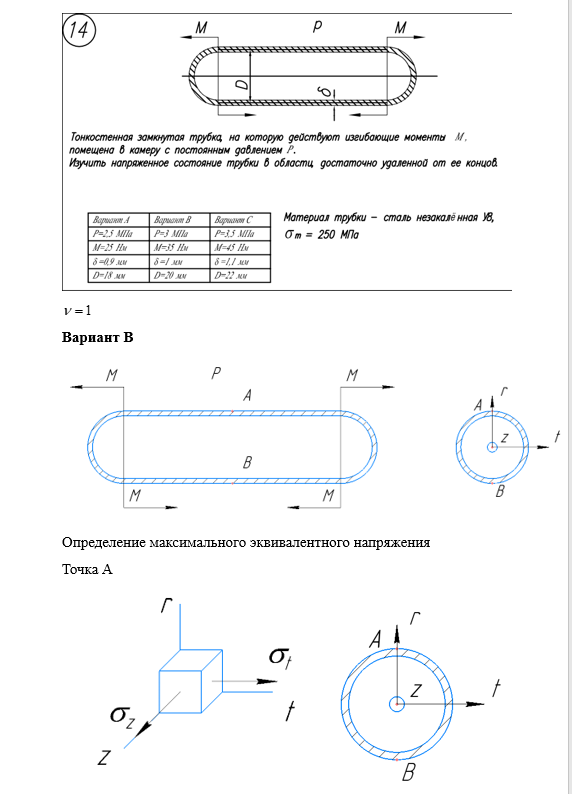Главная » Учебные материалы » Сопротивление материалов » Домашние задания » МГТУ им. Н.Э.Баумана » 4 семестр » Номер 5 » Вариант 14 » Расчет на прочность. Общий случай напряженного состояния