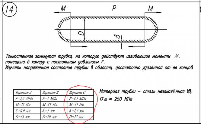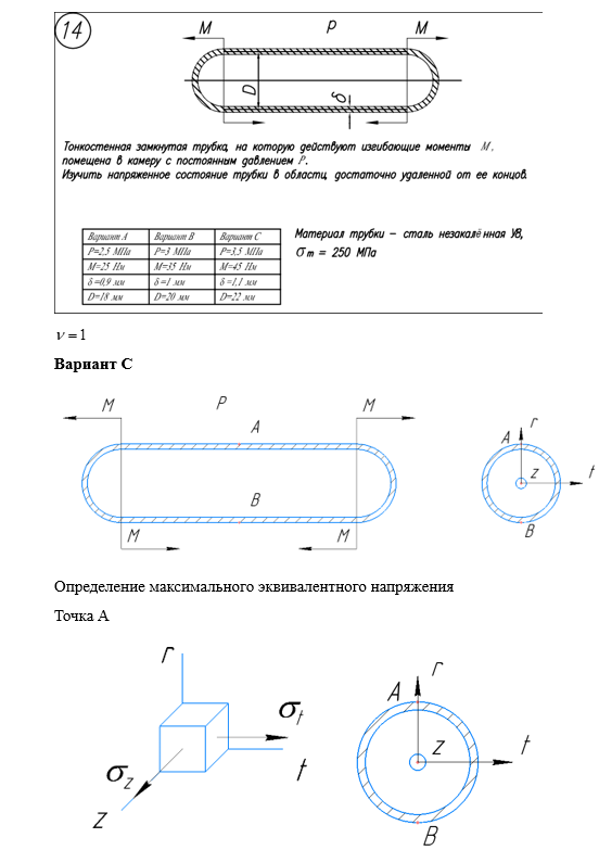 Главная » Учебные материалы » Сопротивление материалов » Домашние задания » МГТУ им. Н.Э.Баумана » 4 семестр » Номер 5 » Вариант 14 » Расчет на прочность. Общий случай напряженного состояния