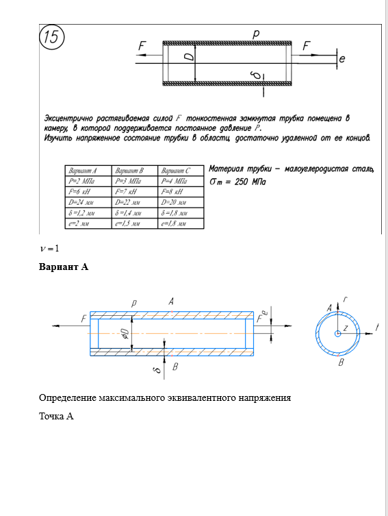 Главная » Учебные материалы » Сопротивление материалов » Домашние задания » МГТУ им. Н.Э.Баумана » 4 семестр » Номер 5 » Вариант 15 » Расчет на прочность. Общий случай напряженного состояния
