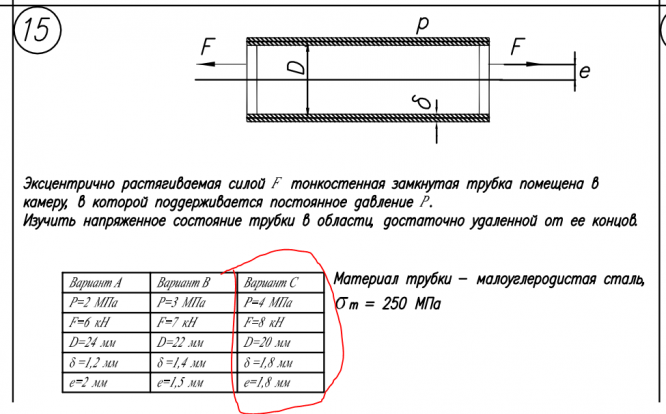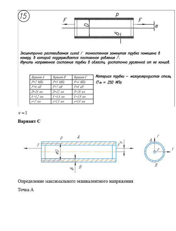 Главная » Учебные материалы » Сопротивление материалов » Домашние задания » МГТУ им. Н.Э.Баумана » 4 семестр » Номер 5 » Вариант 15 » Расчет на прочность. Общий случай напряженного состояния