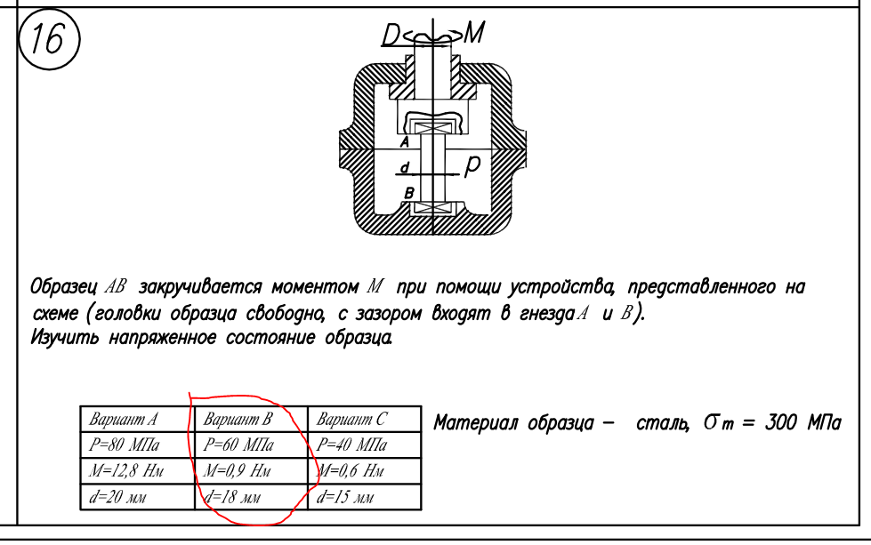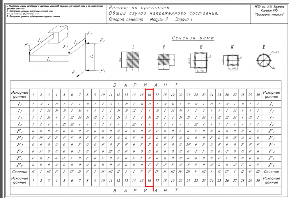 ДЗ 5: Расчет на прочность. Общий случай напряженного состояния вариант 16