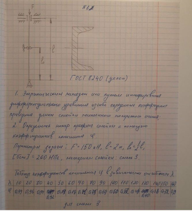 ДЗ 6: Устойчивость сжатых стержней вариант 243