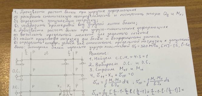 Домашнее задание №1, 2 задачи, "Статически неопределимые задачи изгиба", зачтено