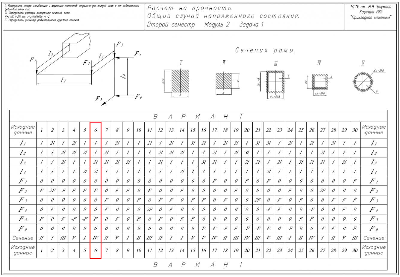 Главная » Учебные материалы » Сопротивление материалов » Домашние задания » МГТУ им. Н.Э.Баумана » 4 семестр » Номер 6C » Вариант 6 » Расчет на прочность. Общий случай напряженного состояния