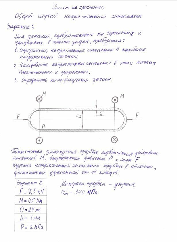 Главная » Учебные материалы » Сопротивление материалов » Домашние задания » МГТУ им. Н.Э.Баумана » 4 семестр » Номер 5 » Вариант 6 » Расчет на прочность. Общий случай напряженного состояния