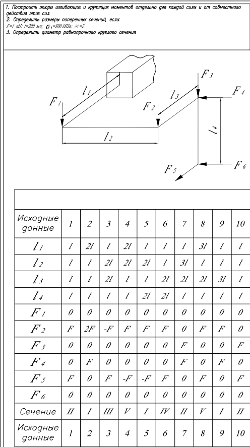 Главная » Учебные материалы » Сопротивление материалов » Домашние задания » МГТУ им. Н.Э.Баумана » 4 семестр » Номер 5 » Вариант 4 » Расчет на прочность. Общий случай напряженного состояния