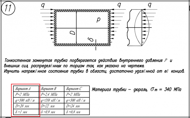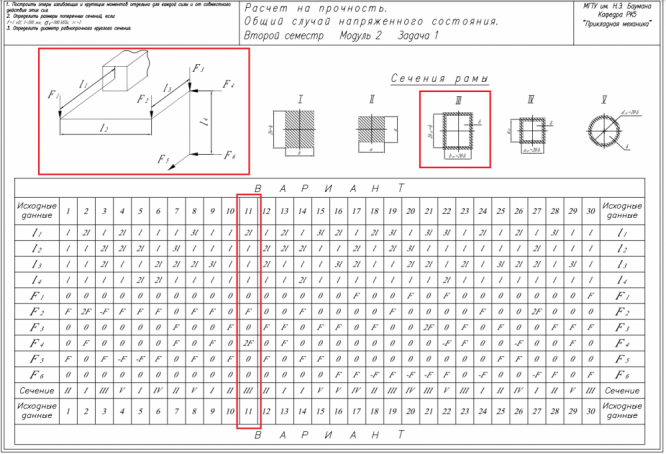 Вариант 11 - Расчет на прочность. Общий случай напряженного состояния (2 задачи).