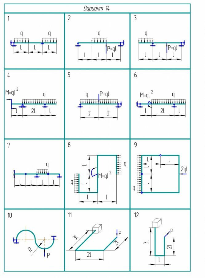 Варианит 14 - ДЗ №1 - Построение эпюр внутренних силовых факторов - 12 Задач