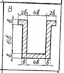 4. D. Тонкостенное сечение (рис. 3), толщина стенок профиля постоянна - δ=b/12, материал - дюраль, [σ]р=[σ]с=150Н/мм2.