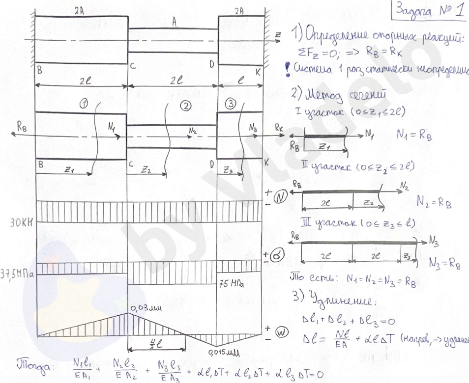ПОЛНОСТЬЮ РЕШЕННОЕ ДЗ№2 "Растяжение-сжатие, кручение"
