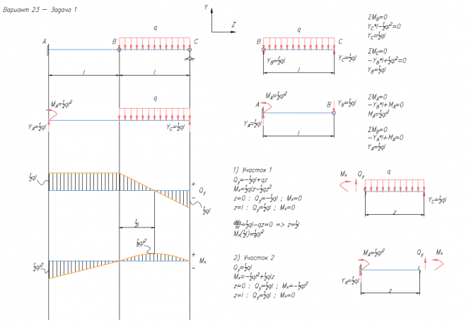 ДЗ 1: Построение эпюр внутренних силовых факторов вариант 23