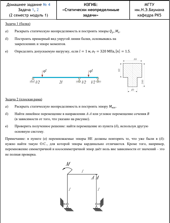 Для студентов МГТУ им. Н.Э.Баумана по предмету Сопротивление материаловСтатически неопределимые задачи изгибаСтатически неопределимые задачи изгиба