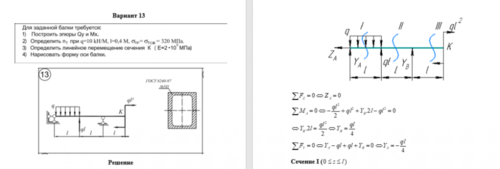 ДЗ 4: Статически определимые балки вариант 13