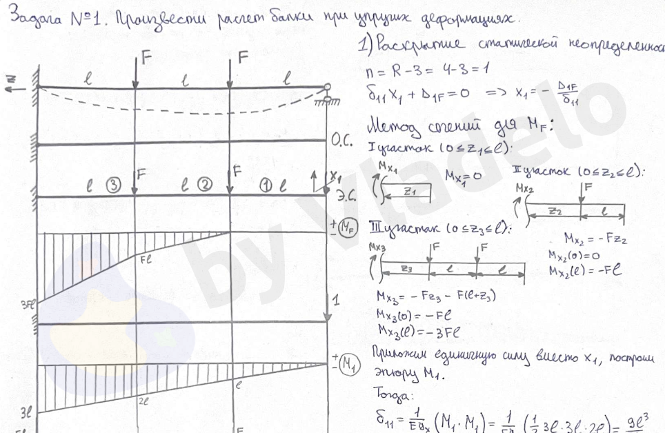 ПОЛНОСТЬЮ РЕШЕННОЕ ДЗ№1 "Статические неопределимые задачи изгиба"