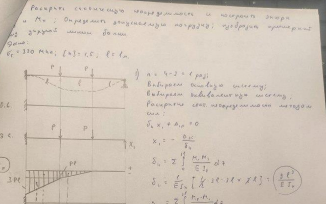 Домашнее задание №1, 2 задачи, "Статически неопределимые задачи изгиба", зачтено