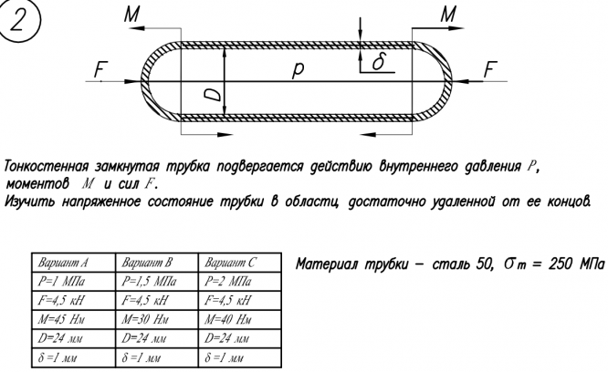 Главная » Учебные материалы » Сопротивление материалов » Домашние задания » МГТУ им. Н.Э.Баумана » 4 семестр » Номер 5 » Вариант 2 » Расчет на прочность. Общий случай напряженного состояния