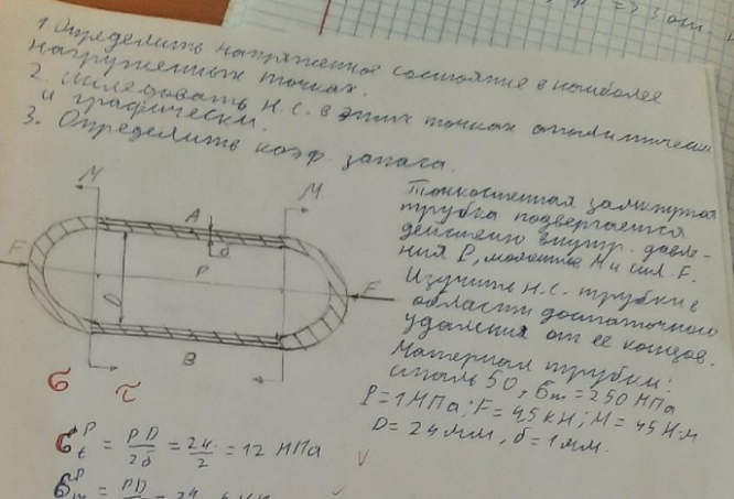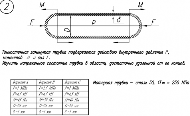 Главная » Учебные материалы » Сопротивление материалов » Домашние задания » МГТУ им. Н.Э.Баумана » 4 семестр » Номер 5 » Вариант 2 » Расчет на прочность. Общий случай напряженного состояния