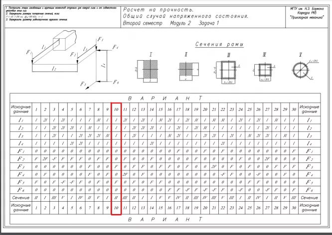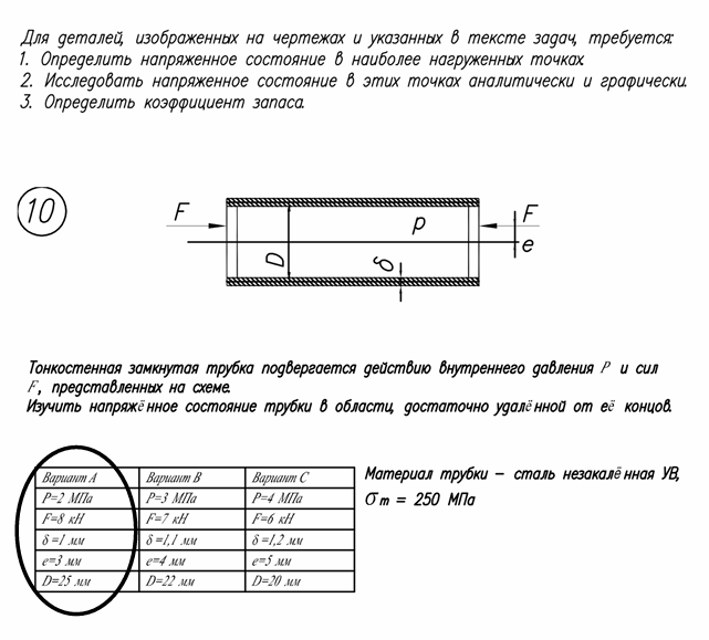 Вариант 10 - ДЗ №2 - Расчет на прочность. Общий случай напряженного состояния - Задача 1 + Задача 2