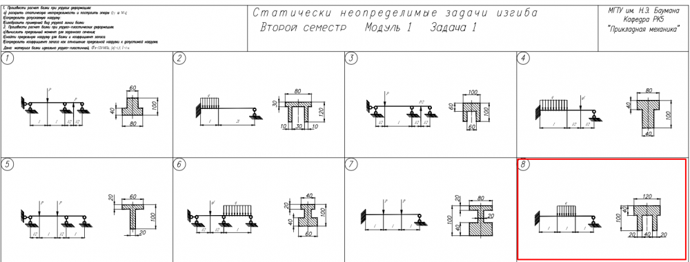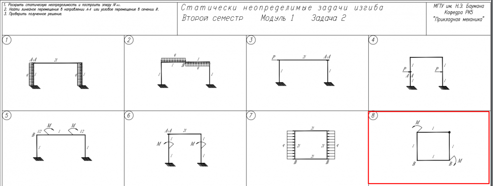 Статически неопределимые задачи изгиба задача 1 вариант 8.pdf