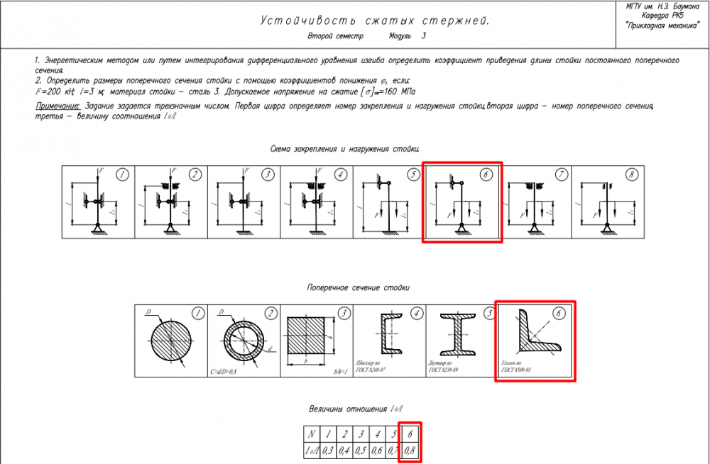 ДЗ 6: Устойчивость сжатых стержней вариант 616