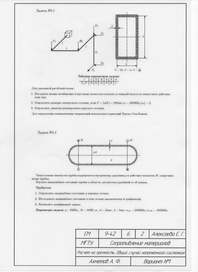 ДЗ 5: Статически неопределимые задачи изгиба вариант 1