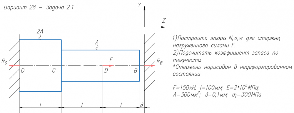 ДЗ 2, 3: Растяжение — сжатие, Кручение вариант 28
