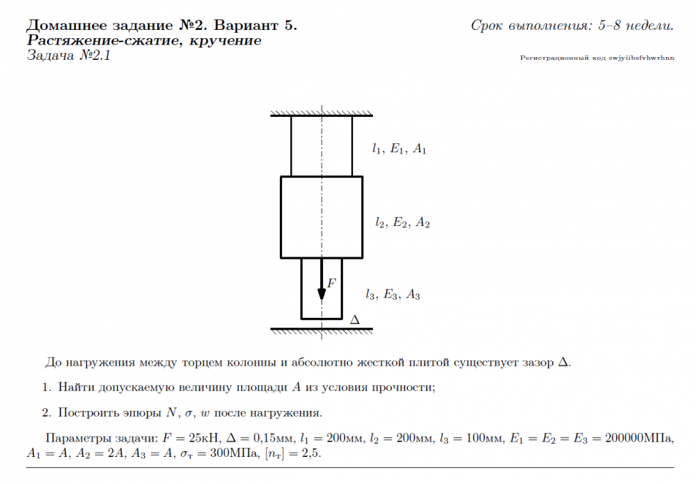 ДЗ 2: Растяжение сжатие, Кручение вариант 5
